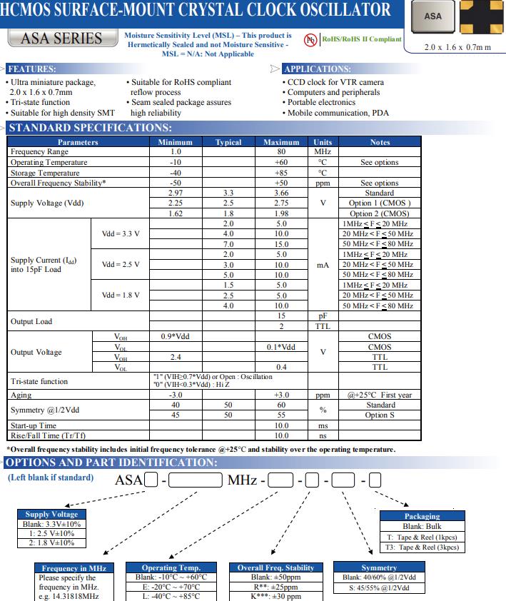 | ASA2-25.000MHZ-L-T | Abracon晶振 | ASA | XO (Standard) | 25MHz | 1.8V | -40°C ~ 85°C |