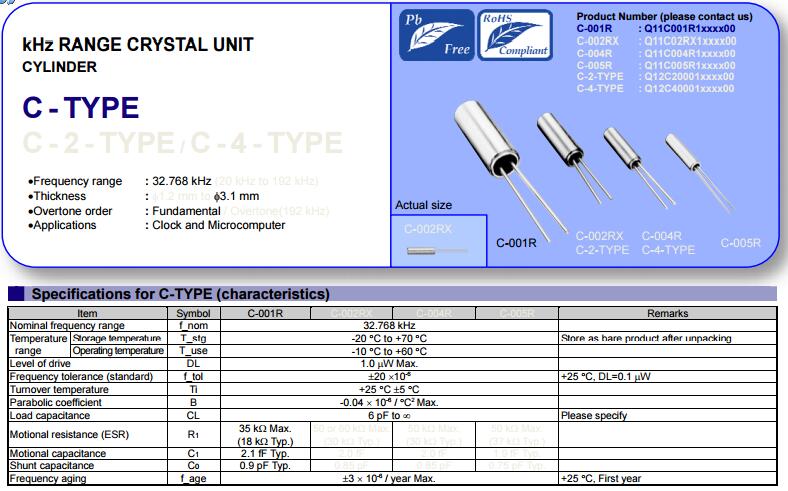 近日接到不少客戶來(lái)電說(shuō)要愛(ài)普生的C-001R 32.768KHZ 12.5PF 20PPM的晶振,而且要的數(shù)量也挺多,也是比較急的.但市面上已經(jīng)沒(méi)有這款晶振了,愛(ài)普生晶振官網(wǎng)也聲明了停產(chǎn),客戶也有提到之前也有使用到愛(ài)普生的這款3*8mm尺寸的晶振,在這給大家提個(gè)醒,愛(ài)普生C-001R或C-TYPE這款32.768KHZ的晶振已經(jīng)停產(chǎn)了,若要繼續(xù)使用的話可以找KDS的DT-38或者精工的VT-308代替使用.KDS的貨源充足,質(zhì)量也穩(wěn)定,建議大家使用日本進(jìn)口KDS品牌的貨.下面為大家提供一下愛(ài)普生停產(chǎn)晶振C-001R的資料.