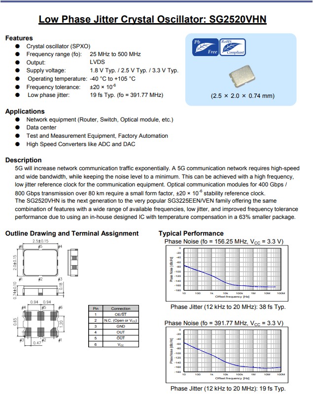 SG2520VHN差分晶振X1G005941001015適用于5G通信網絡設備