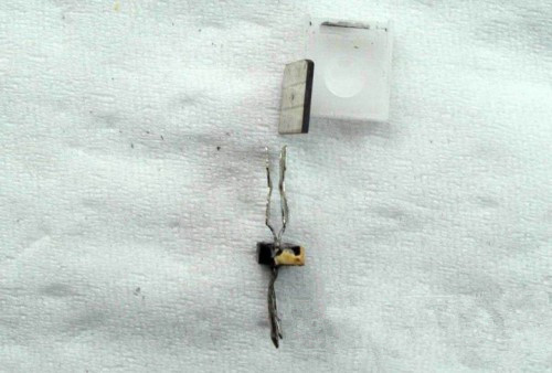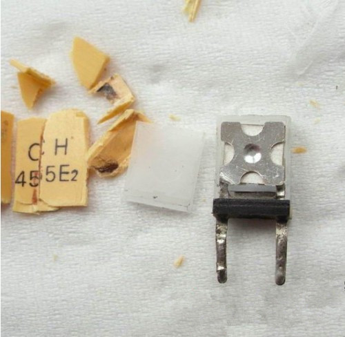 最后指出,“晶振”最早本是“石英晶體諧振器’’的簡稱,后來研制出了“壓電陶瓷諧振器",習慣上也稱為晶振。為了有所區(qū)別,便稱為石英晶振和陶瓷晶振。現在市場上仍有部分地區(qū)稱陶瓷晶振為壓電陶瓷諧振器,有的叫陶瓷諧振器。類似CRB455E這樣的陶瓷晶振,很多客戶都提出相同的問題,這么大的東西,又便宜,里面裝的都是什么東西呀?下面是一支上錫之后拆下來的陶瓷晶振,給他了進行了一次解剖,讓大家更深刻的了解有關陶瓷晶振的內部結構。