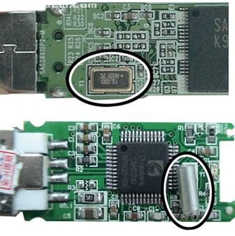上面的結(jié)構(gòu)圖是拆開了我們的閃存器,可以很明顯的看到兩者用到的晶振不同,前面的主板用到的晶振是高質(zhì)量,高穩(wěn)定性的貼片晶振,直接采用高端的自動貼片機(jī)貼片就可以替代手工焊接這道工序。這種技術(shù)可以提供提高可靠性,加強(qiáng)抗震能力,抗干擾。下面的采用了市場上最為普遍常見的圓柱晶振,這種圓柱晶振需要手工焊接,有時候,圓柱晶振兩腳之間的間距無法達(dá)到我們線路板上的間距,可能需要人工來扳開這個腳位,然后給下個焊接崗位的人進(jìn)行焊接。可能由于員工手中的汗液或者用勁太大,已經(jīng)導(dǎo)致晶振后期不能長時間的運行工作。前面我和大家講到了,晶振是產(chǎn)生原始頻率的東西,它都不穩(wěn)定,整個閃存的數(shù)據(jù)怎么能夠談得上安全存儲。