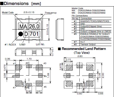 DSB222MAA溫補振蕩器,KDS石英振蕩器規格參考