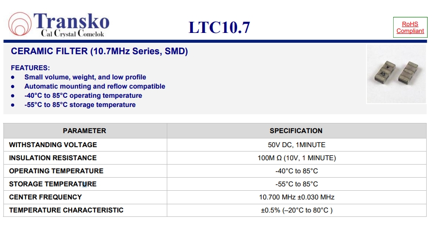 Transko晶振推出的遙遙領先的LTCV和LTCS產(chǎn)品可替代村田停產(chǎn)的陶瓷過濾器系列